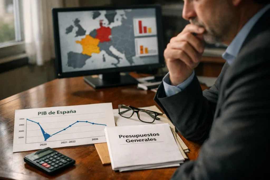 En 2026 la situación es distinta. La tasa de paro continúa descendiendo gradualmente y el consumo privado mantiene cierta resiliencia, pero el entorno exterior es menos favorable. Alemania muestra bajo dinamismo industrial y Francia modera su crecimiento, lo que afecta exportaciones españolas.